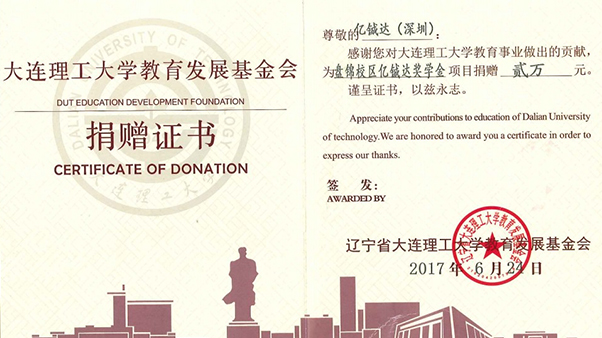 為支持國家教育發(fā)展,同時(shí)也為拓寬企業(yè)影響力。億鋮達(dá)采取公益性質(zhì)設(shè)立了大連理工學(xué)校獎(jiǎng)學(xué)金。鼓勵(lì)莘莘學(xué)子奮發(fā)學(xué)習(xí),為國家教育貢獻(xiàn)綿薄之力。